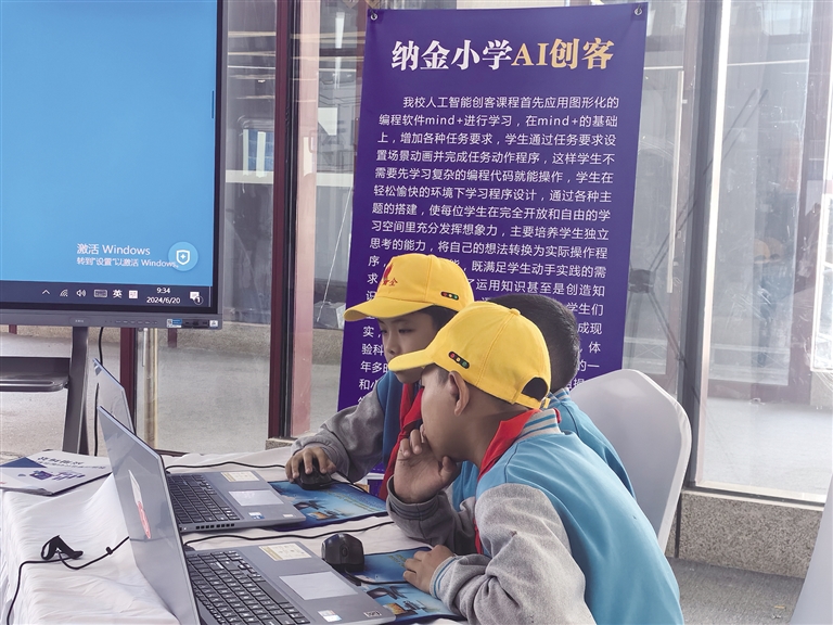 納金小學(xué)的學(xué)生在調(diào)試他們的作品。