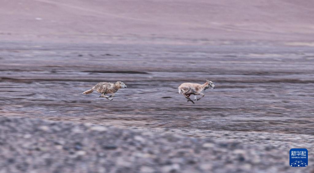 6月14日,一只野狼在追逐一只懷孕的母藏羚羊(視頻截圖)。新華社發(fā)(達(dá)瓦多吉攝)