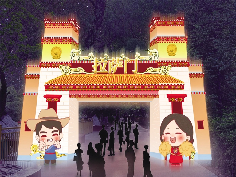 記者了解到,“點(diǎn)亮拉薩——秦淮燈會(huì)”在宗角祿康公園東門(mén)設(shè)置大型燈組,搭配拉薩的吉祥物牦牛、江蘇的吉祥物麋鹿,燈組用拉薩經(jīng)典配色,搭建飄逸的彩帶雙翼,表達(dá)“蘇拉一家親,攜手向未來(lái)”的寓意。在公園走廊里、草坪上,還用精致的現(xiàn)代光影作品,安排展示江南煙雨、小橋流水、青磚黛瓦、梅瓶明珠、桃花仙鶴、油傘折扇、上元燈彩等富有江蘇特色的美景雅韻以及具有拉薩特色的建筑和文化精品。