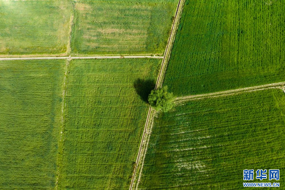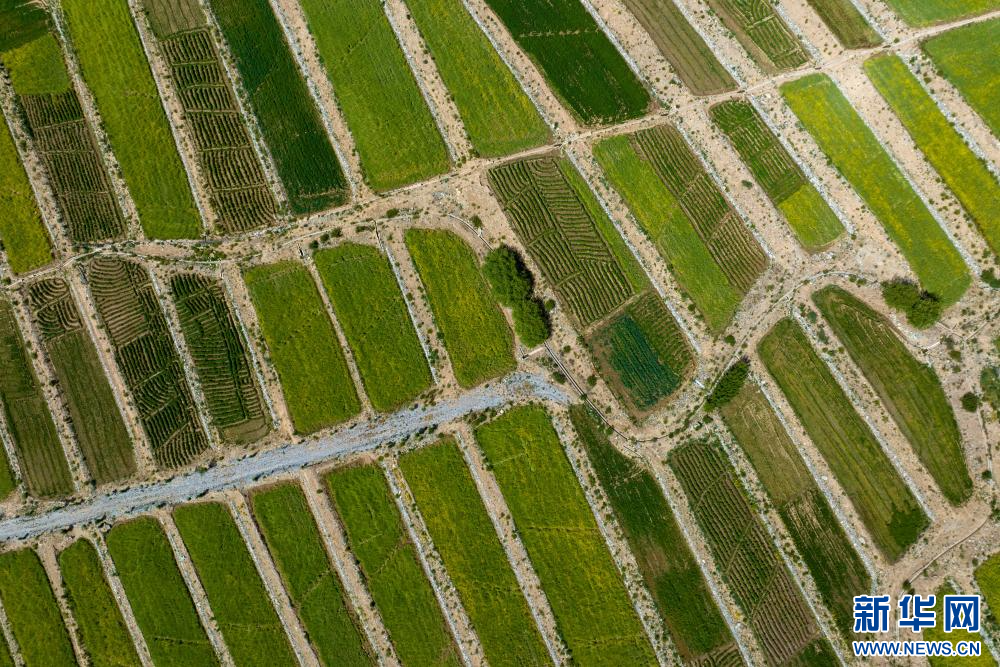 6月21日在西藏山南市乃東區(qū)境內(nèi)拍攝的田園風(fēng)光(無(wú)人機(jī)照片)。新華網(wǎng) 旦增努布 攝