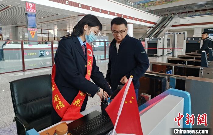 圖為乘客在林芝火車站準備進站。格桑央金 攝