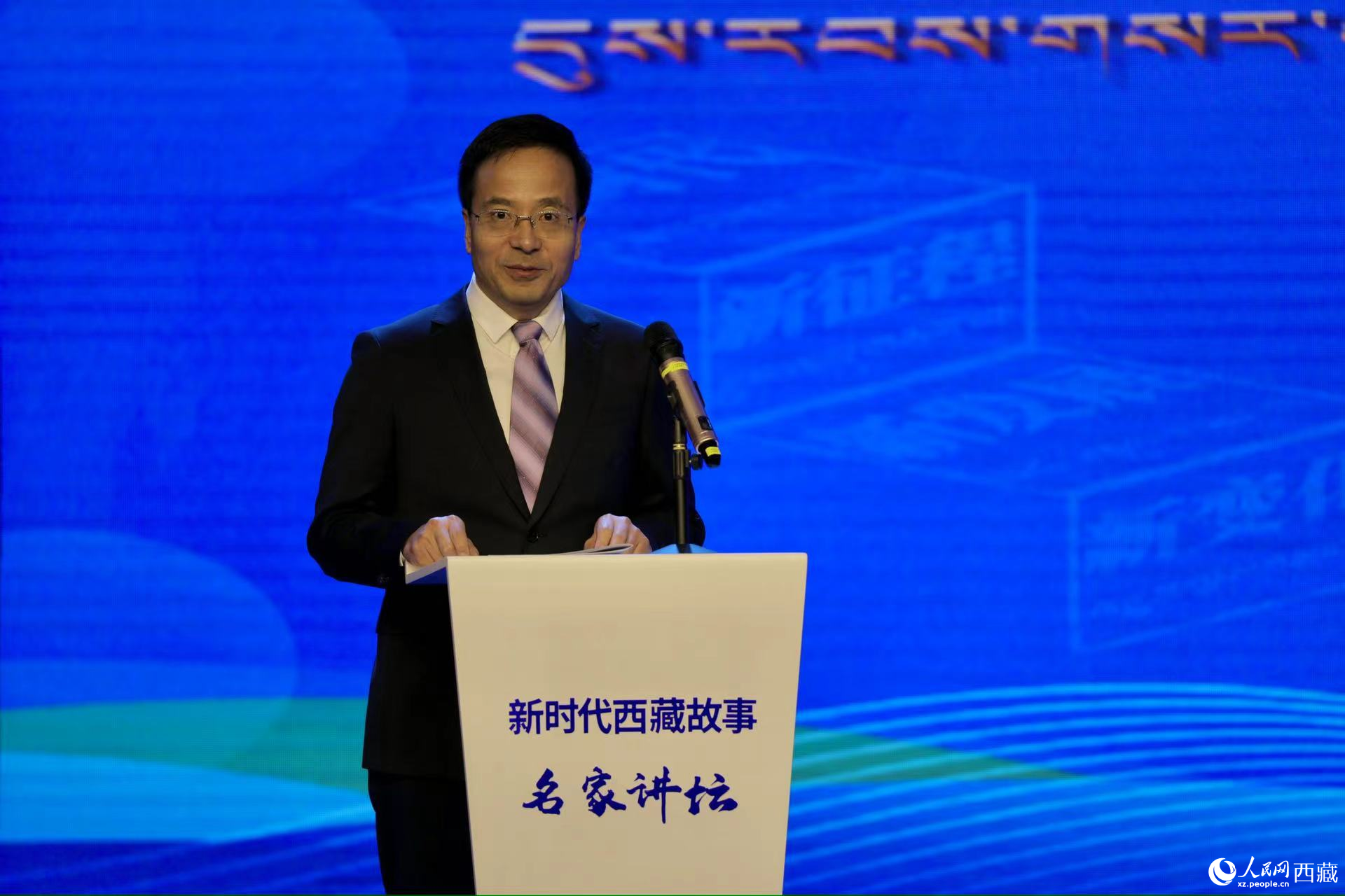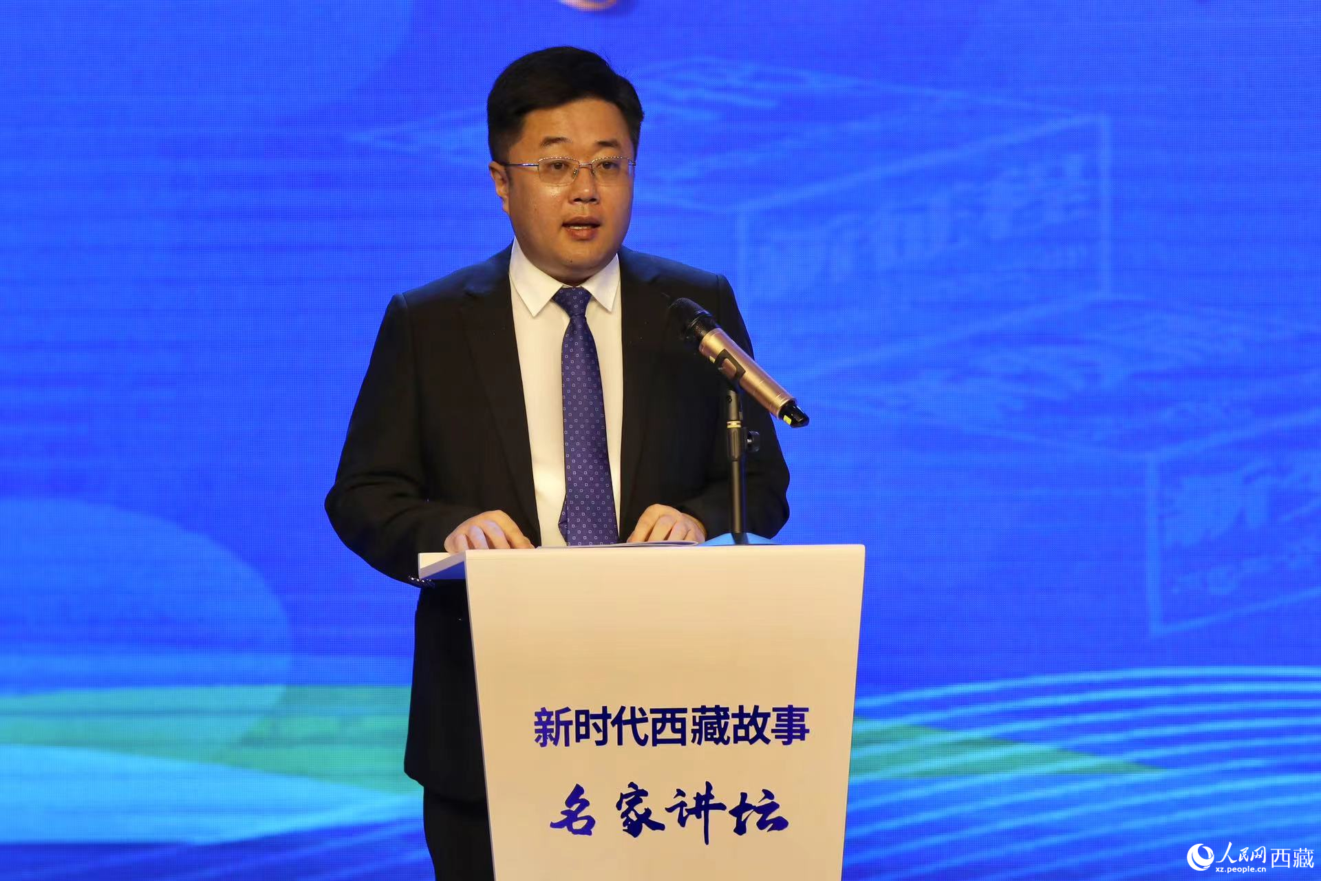 西藏自治區(qū)黨委宣傳部副部長,西藏自治區(qū)社會科學(xué)院黨組書記,中央和國家機(jī)關(guān)第七批、第八批援藏干部孫向軍作主題演講。人民網(wǎng)記者 次仁羅布攝