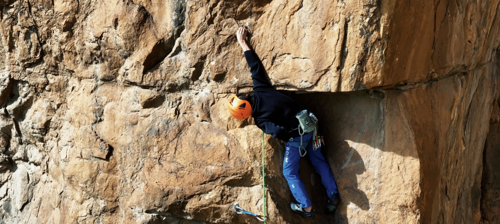 穆澤潤正在完成自己的第一次高原野攀路線