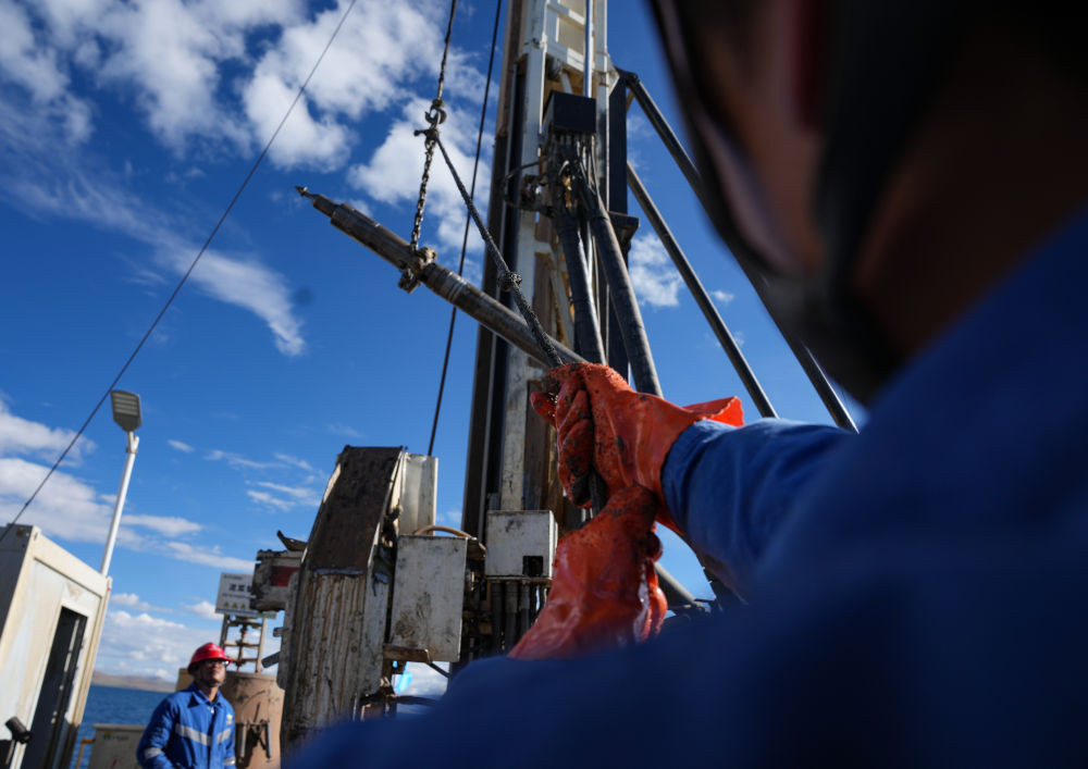 7月11日,鉆工劉文平在準(zhǔn)備拆卸鉆桿。新華社記者 晉美多吉 攝