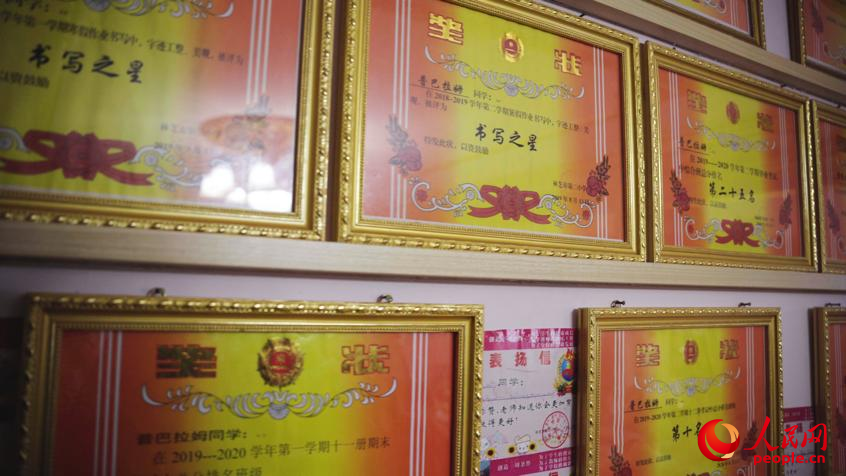 達瓦堅參家墻上的獎狀。人民網(wǎng)記者 趙晨攝
