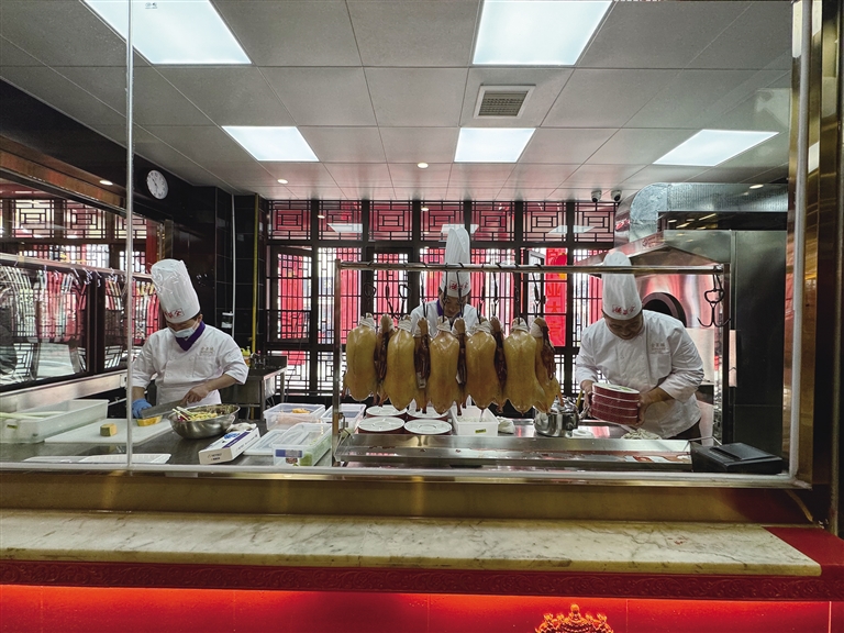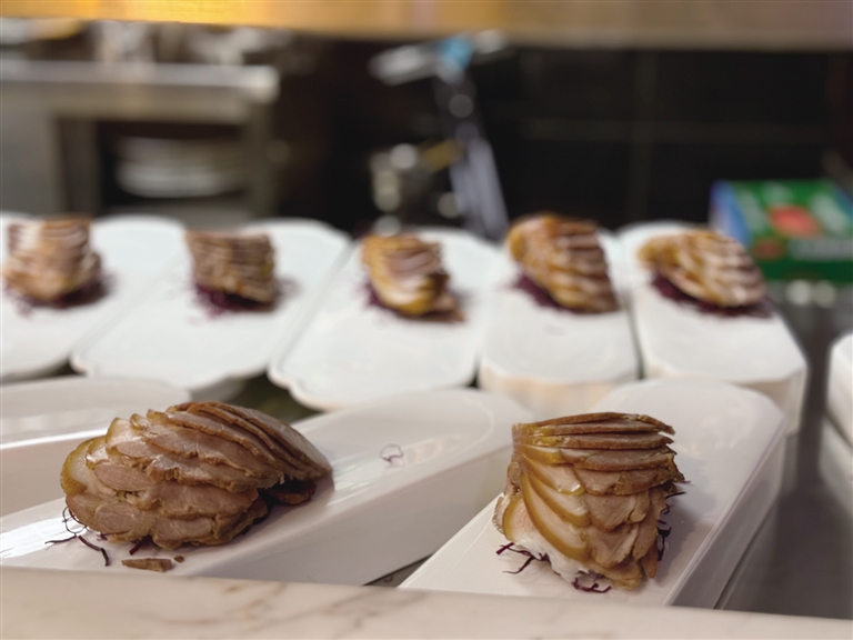 全聚德拉薩店選址于仙足島濱河路二期,店鋪設(shè)計匠心獨(dú)運(yùn),將古樸典雅的外部風(fēng)貌與簡約優(yōu)雅的現(xiàn)代內(nèi)部裝飾巧妙融合。墻壁上隨處可見的掛畫在介紹著店鋪歷史的同時,更為空間增添了一抹藝術(shù)氣息。開業(yè)當(dāng)天,隨著歡快的開場舞響起,慶典活動正式拉開帷幕?,F(xiàn)場,片鴨師傅們以精湛的技藝展示著全聚德的獨(dú)特魅力,一只只色澤誘人的烤鴨在他們的巧手下化身為薄如蟬翼的鴨肉片,搭配新鮮的蔥絲、黃瓜條及特制甜面醬卷入薄餅中,一口咬下,鮮美與香甜在口中瞬間綻放,令人回味無窮。