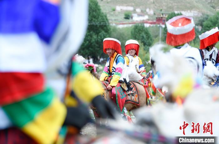 7月21日,西藏自治區(qū)拉薩市堆龍德慶區(qū)馬鎮(zhèn)朗巴村民眾賽馬歡度“望果節(jié)”?!巴?jié)”民俗已有1500多年的歷史,是國家級非物質(zhì)文化遺產(chǎn)。圖為騎手準(zhǔn)備比賽。中新社記者 貢嘎來松 攝