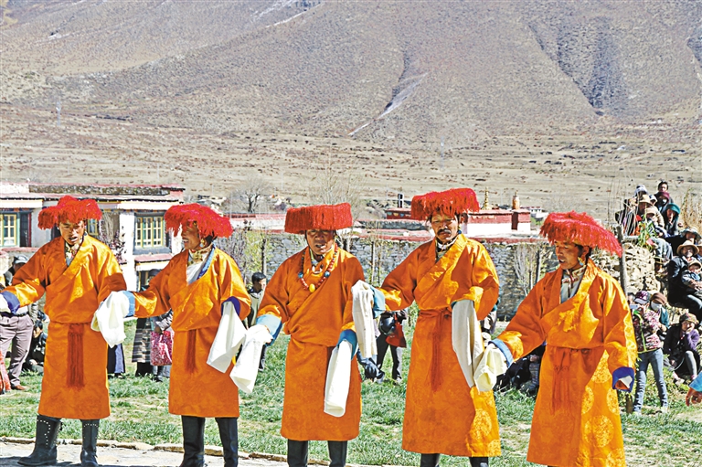 甲瑪鄉(xiāng)諧欽隊在非遺巡展活動上表演諧欽。