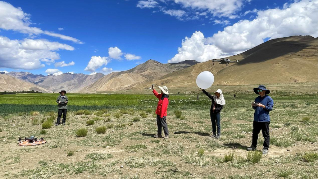 團(tuán)隊開展探空氣球大氣廓線觀測和無人機熱紅外影像獲取。(中國科學(xué)院空天信息創(chuàng)新研究院供圖)