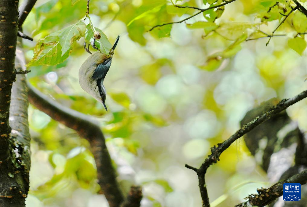 棲息在巴松措旅游風(fēng)景區(qū)樹林里的小鳥(8月2日攝)。新華社記者 張汝鋒 攝
