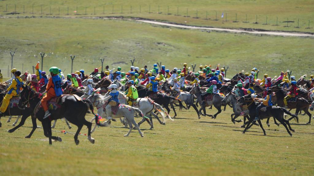 12日,10公里傳統(tǒng)大跑項(xiàng)目開賽,上百匹駿馬在草原上揚(yáng)蹄疾奔,騎手多是十來歲的少年。15歲的普扎巴從6歲開始做騎手,曾騎著當(dāng)?shù)卦S多名馬到各地參加比賽,拿過多次冠軍。“我相信這次也能拿第一名?!?0日,他在馬背上對記者說。