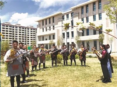拉薩師范高等專科學(xué)校學(xué)生在校園演奏民樂。
