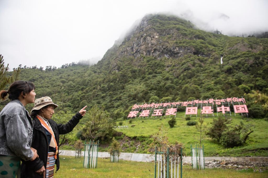 在西藏山南市隆子縣玉麥鄉(xiāng),卓嘎(右)給女兒巴桑卓嘎講述她為國守邊的故事(2021年7月10日攝)。