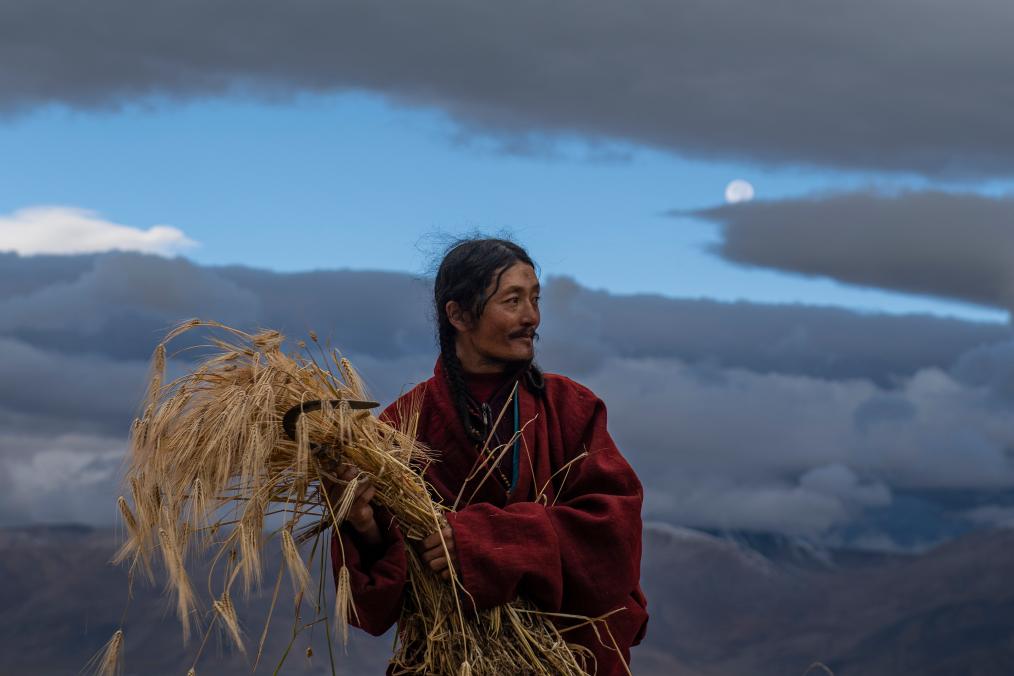 2021年9月23日清晨,西藏那曲市尼瑪縣文部鄉(xiāng)文部南村村民開鐮收割。