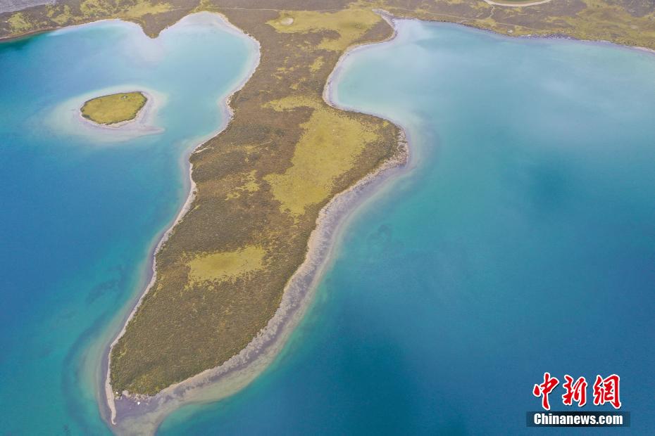 9月6日,思金拉措景區(qū)風光秀麗。思金拉措湖位于西藏拉薩市墨竹工卡縣,海拔4500米,湖邊群山高聳、草甸金黃。從空中俯瞰,思金拉措湖心島如同“黃金右腳”踢球。圖為思金拉措湖心島。(無人機照片)