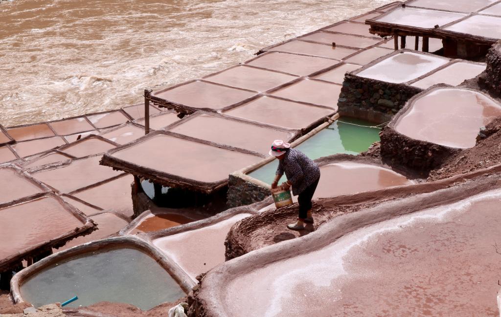 9月,一年曬鹽季進(jìn)入尾聲。西藏昌都市芒康縣納西民族鄉(xiāng),瀾滄江的高山河谷坡地上,加達(dá)村村民開始例行修補(bǔ)他們1300多歲的鹽田。