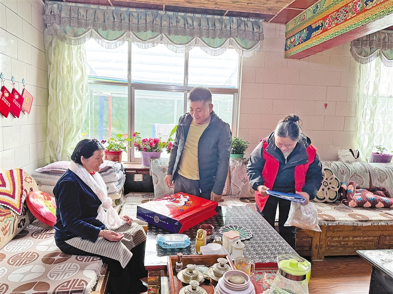 圖為亞?wèn)|縣帕里鎮(zhèn)工作人員在民族團(tuán)結(jié)通婚家庭開(kāi)展走訪(fǎng)慰問(wèn)。(本版圖片均由記者 扎西頓珠 楊子彥 旦增嘎瓦 攝)