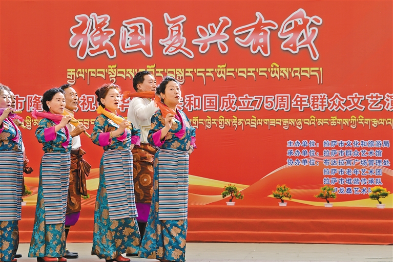 10月1日上午,“強(qiáng)國(guó)復(fù)興有我”群眾文藝演出在拉薩市宗角祿康公園舉行。記者 潘多 攝