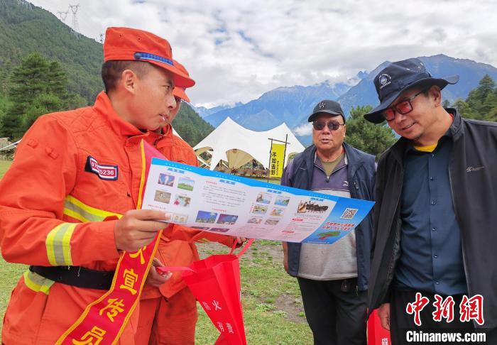 “同志您好,秋季氣候干燥,景區(qū)游玩一定要杜絕攜帶火種上山?!痹诓芸h嘎朗湖、崗云杉林景區(qū),森林消防員向游客們宣傳森林防滅火常識,提供助民幫困服務,倡導游客安全出行、文明旅游。