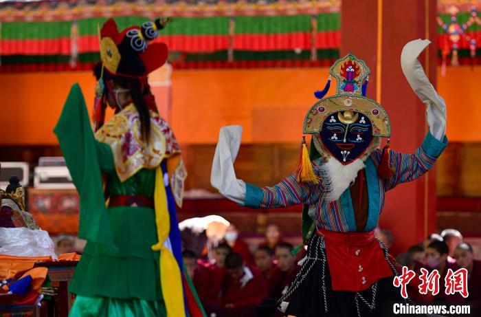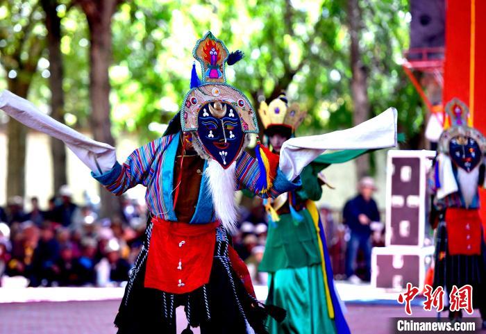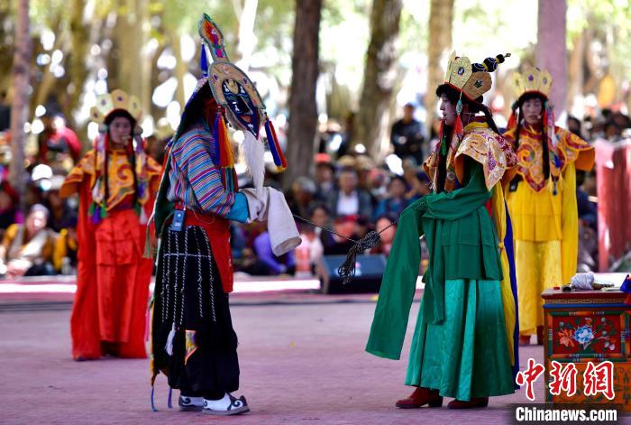 10月7日,西藏自治區(qū)日喀則市扎什倫布寺內上演傳統(tǒng)八大藏戲之一《諾桑王子》,吸引僧俗民眾觀看。藏戲集說唱、表演、歌舞、文學于一體,有著600多年歷史,被譽為藏文化的“活化石”。中新社記者 李林 攝