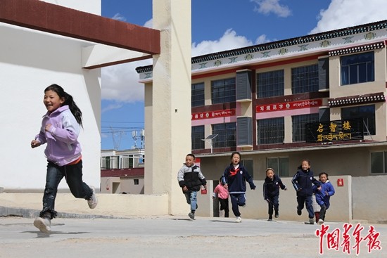 9月14日,西藏那曲市班戈縣第二(中石化)小學(xué),學(xué)生們課間休息時在戶外玩耍。中青報(bào)·中青網(wǎng)記者 孔斯琪/攝