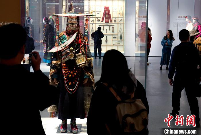 深秋拉薩,西藏博物館迎參觀熱,游客通過展覽了解西藏歷史文化和民俗風情。圖為10月19日游客在西藏博物館參觀。中新社記者 李林 攝
