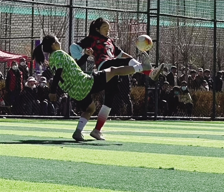 而最能證明她們訓練成果的就是足球聯(lián)賽?!?023年“迎新杯”酷銳運動拉薩業(yè)余足球5人制(女子組)比賽、第二屆“亞克杯”女子5人制交流賽在拉薩開賽,這也是西藏少有的女足賽事。米央以拉薩另類女子足球隊隊員身份參賽,盡管米央是隊內年紀最小的成員,但她的能力絲毫不遜于任何人。米央所在的這支由高中生、大學生等組成的隊伍,經過10場比賽,拼盡全力最終奪得冠軍?!懊慨斪闱蛟谖夷_下滾動飛躍,每當我奔跑在綠茵場上,那種肆意和快樂讓我堅定我的選擇,我的夢想是踢進中國國家女子足球隊?!泵籽胝f。雖然她與夢想還有距離,但內心那股熊熊燃燒的信念力量,成為她刻苦訓練的“定心丸”。