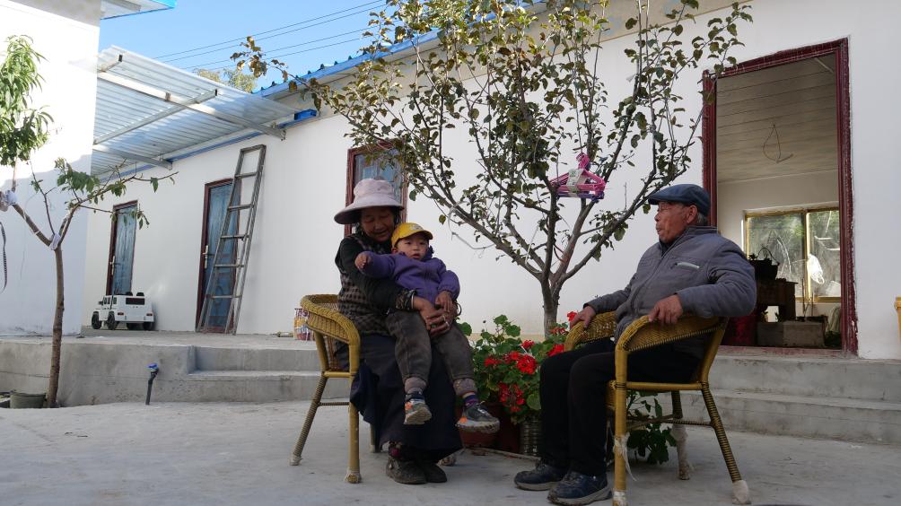 10月21日,賈永明(右)與瓊國(guó)逗弄外孫。新華社記者魏冠宇 攝