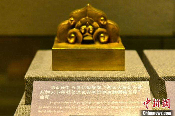 2019年3月28日,在西藏百萬農(nóng)奴解放紀(jì)念館展出的清朝冊封五世達(dá)賴?yán)锝鹩 V行律缬浾?江飛波 攝