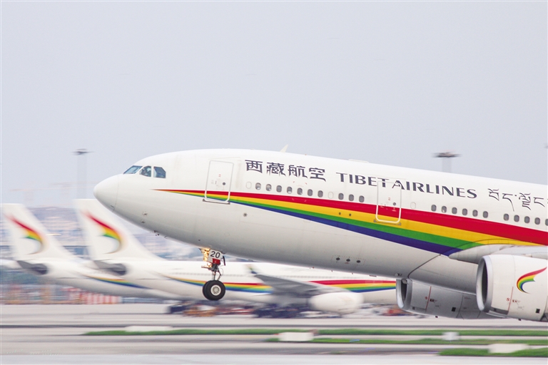 西藏航空A330飛機(jī)起飛。圖由陳榛煒提供
