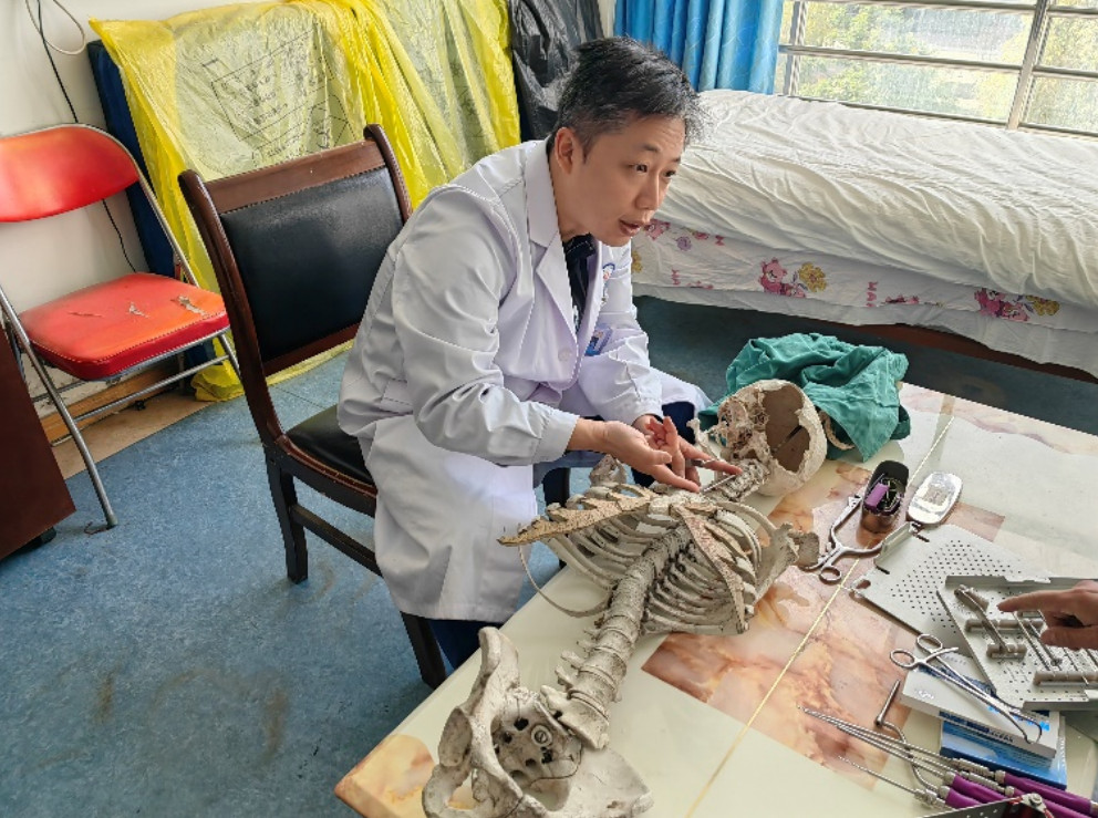 第十批醫(yī)療人才“組團式”援藏專家北京協(xié)和醫(yī)院蔡思逸主任、西藏自治區(qū)人民醫(yī)院骨科脊柱組彭超主任醫(yī)師及洛絨赤乃副主任醫(yī)師對這名患者高度重視,共同商討治療方案?;颊呤中g(shù)指征明確,手術(shù)方案的選擇卻讓各位專家陷入了討論。