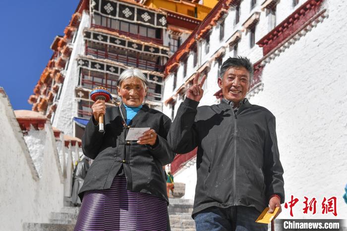 近日,西藏布達拉宮完成粉刷,呈現(xiàn)出別樣的美。粉刷后的宮墻在陽光映照下,與藍天白云相襯,顯得莊嚴肅穆。布達拉宮的粉刷,不僅是為了讓其外觀更加美觀,更重要的是能對墻體建筑起到保護作用,增強其防雨功能。按照慣例,布達拉宮每年藏歷九月左右開始粉刷,并且要在藏歷九月二十二日“降神節(jié)”之前完成,期間有眾多民眾,游客積極參與。布達拉宮作為世界文化遺產(chǎn),是眾多進藏游客必去的“打卡點”。圖為11月8日,來自西藏昌都的信眾準備進入布達拉宮。中新社記者 貢確 攝