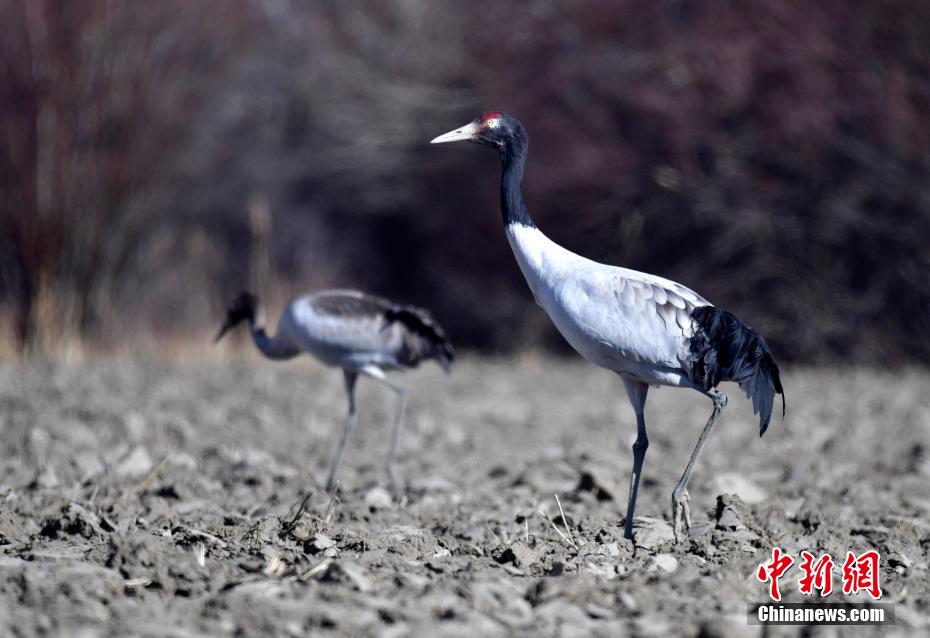 黑頸鶴是全球十五種鶴類中唯一在高原地區(qū)繁殖和越冬的鶴類,有著“高原精靈”之稱,屬中國國家一級保護(hù)動物。位于雅魯藏布江與年楚河交匯處的西藏日喀則市桑珠孜區(qū)邊雄鄉(xiāng)有著廣袤的農(nóng)田和濕地,是黑頸鶴的主要越冬地之一。圖為11月20日,黑頸鶴在西藏日喀則市桑珠孜區(qū)邊雄鄉(xiāng)農(nóng)田內(nèi)覓食。