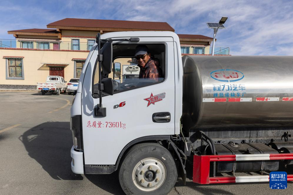 11月28日,駕駛員用罐車將巴氏殺菌后的新鮮牦牛奶運(yùn)往拉薩市場(chǎng)。新華社記者 姜帆 攝