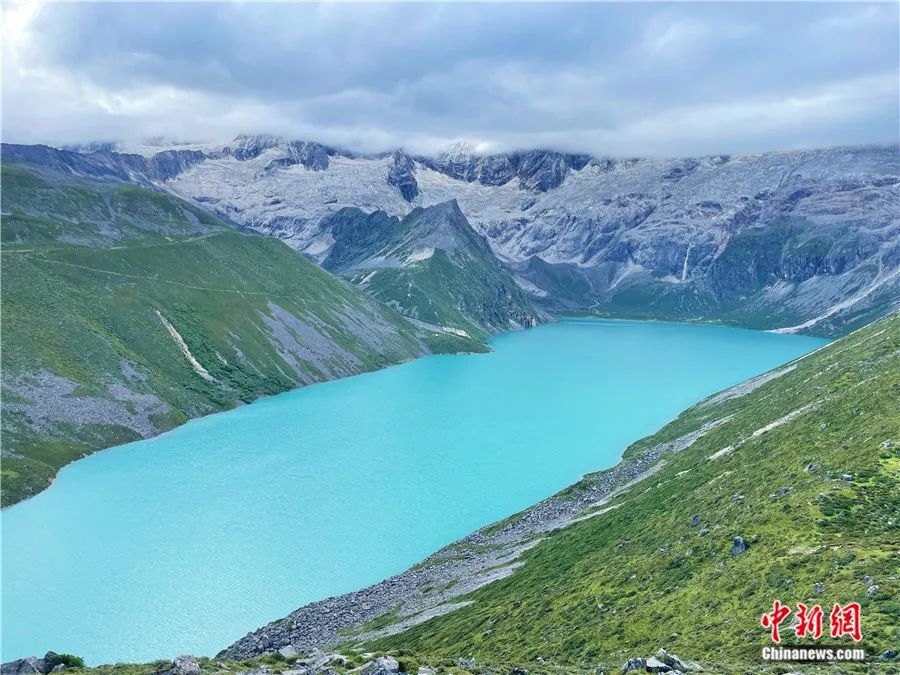 庫拉崗日冰川與白瑪林湖。中新社記者 趙朗 攝
