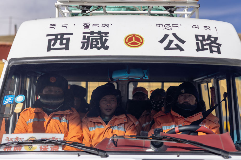 “天下第一道班”的養(yǎng)路工人們乘車去養(yǎng)護道路(12月1日攝)。新華社記者 姜帆 攝