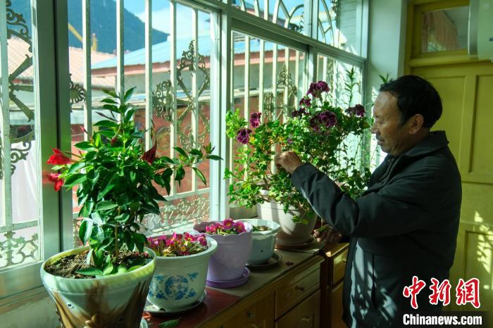 今年62歲的益西四郎是西藏波密縣居民,如今已經(jīng)退休,他見證了川藏公路波密段幾十年間的變化。圖為12月14日,益西四郎在家打理花草。記者 江飛波 攝
