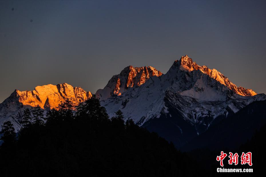 12月17日,夕陽照在西藏自治區(qū)林芝市波密縣境內(nèi)的雪山頂上,出現(xiàn)“日照金山”的景象。林芝被譽為“雪域江南”,境內(nèi)雪山巍峨、峽谷幽深、森林廣布,生態(tài)環(huán)境極為純凈,兼具山、水、林、草、湖、雪、冰之美,是絕佳的旅游勝地。也是川藏公路上風(fēng)光最美的一段。中新社記者 貢嘎來松 攝