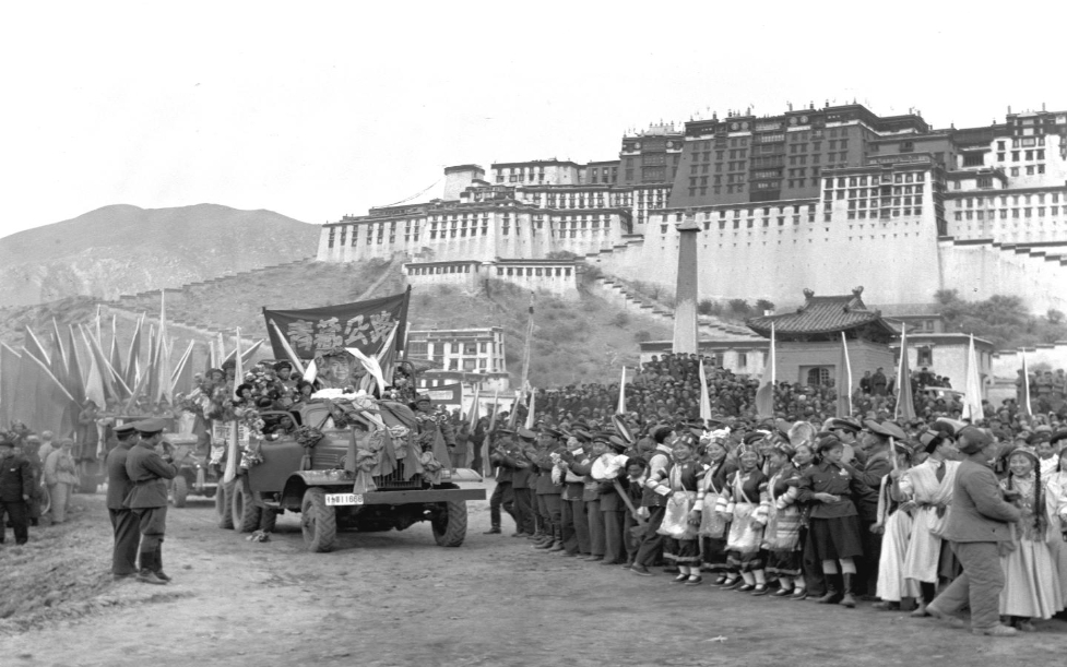 1955年1月11日,康藏、青藏公路的通車典禮在拉薩舉行。通往祖國邊疆西藏的兩條大動(dòng)脈——康藏公路和青藏公路,已于1954年12月25日同時(shí)通車。 新華社記者劉詩臨、任用昭攝