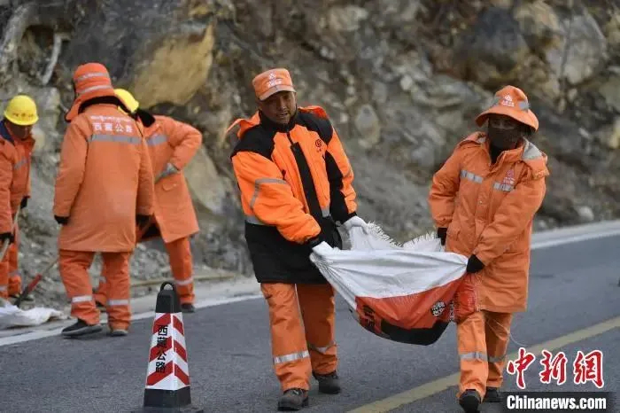 圖為道班工人清理公路上的落石。中新社記者 貢嘎來(lái)松 攝