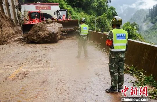 圖為武警官兵處理路基垮塌險(xiǎn)情現(xiàn)場(chǎng)。受訪(fǎng)單位提供