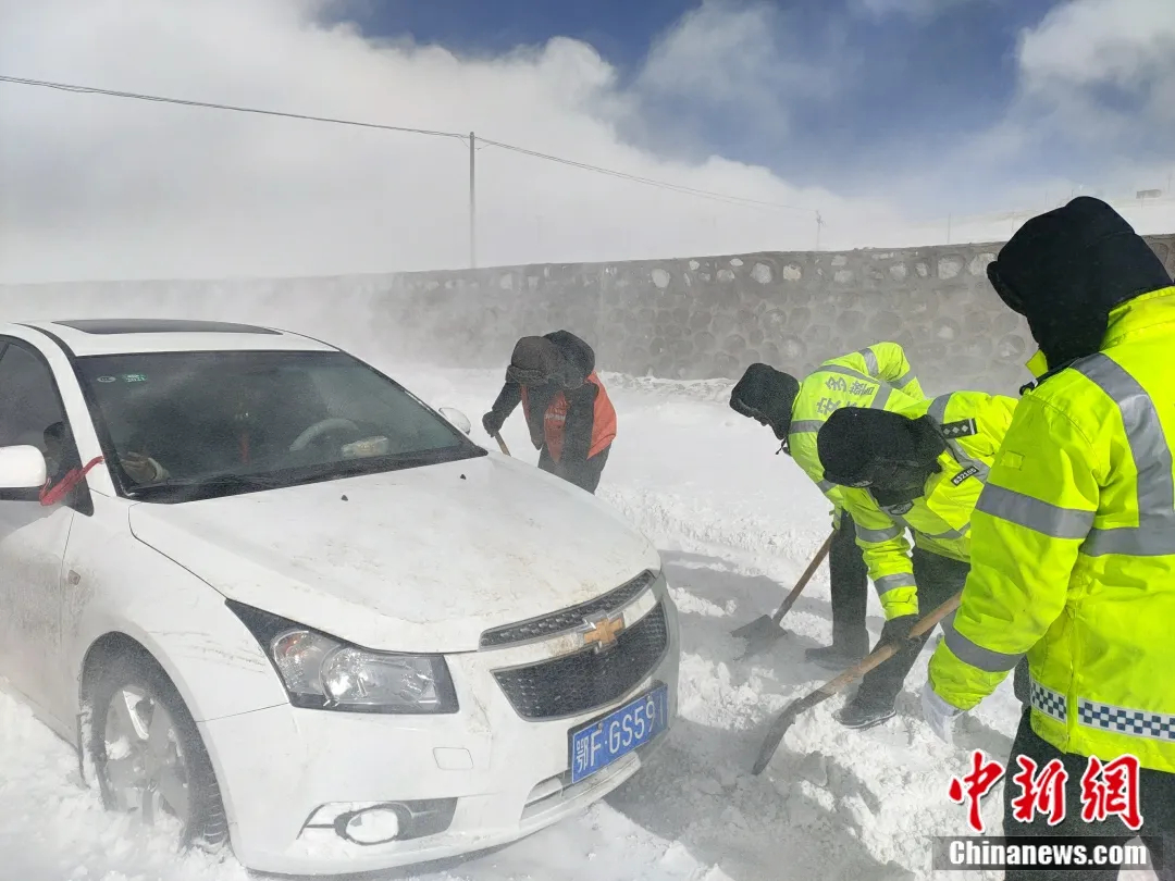 資料圖為交警除雪保通畫(huà)面。受訪(fǎng)單位提供