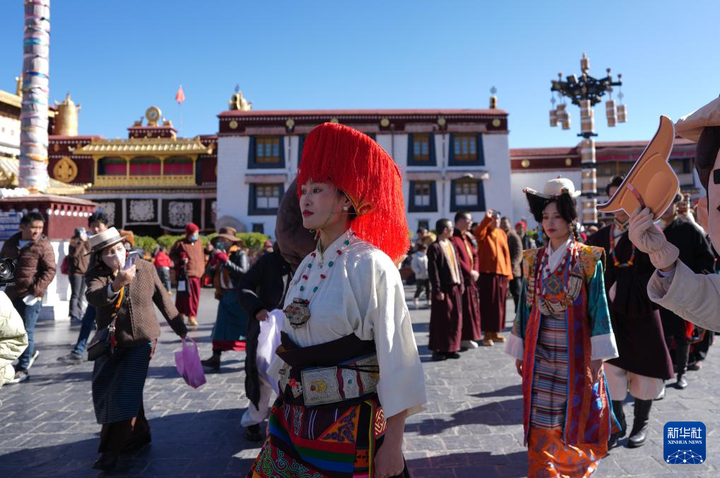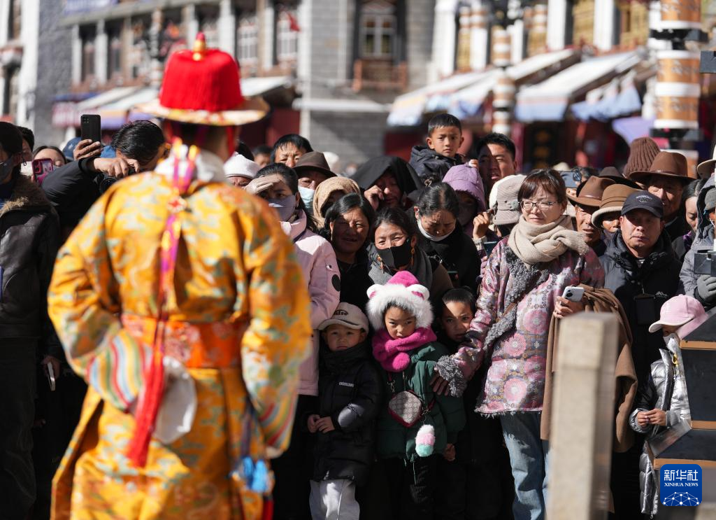 作為拉薩市文化和旅游局主辦的“繁飾自然·衣彩拉薩——拉薩新年服飾秀”群眾文化活動(dòng)的一部分,1月3日,穿著傳統(tǒng)藏裝的模特巡游在拉薩八廓街。