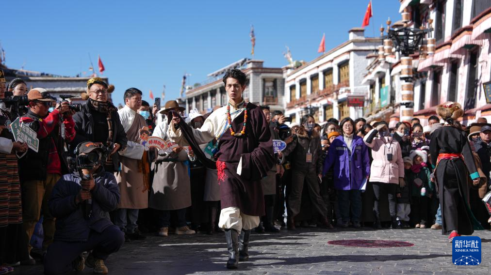 1月3日,模特在拉薩八廓街巡游。新華社記者 晉美多吉 攝