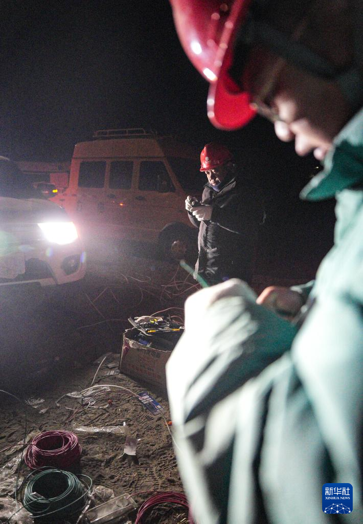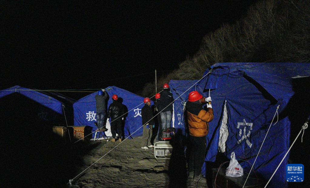 1月7日,在定日縣長所鄉(xiāng)集中安置點(diǎn),工作人員在保障電力供應(yīng)。新華社記者 晉美多吉 攝