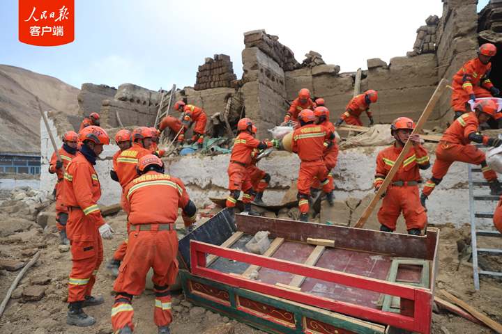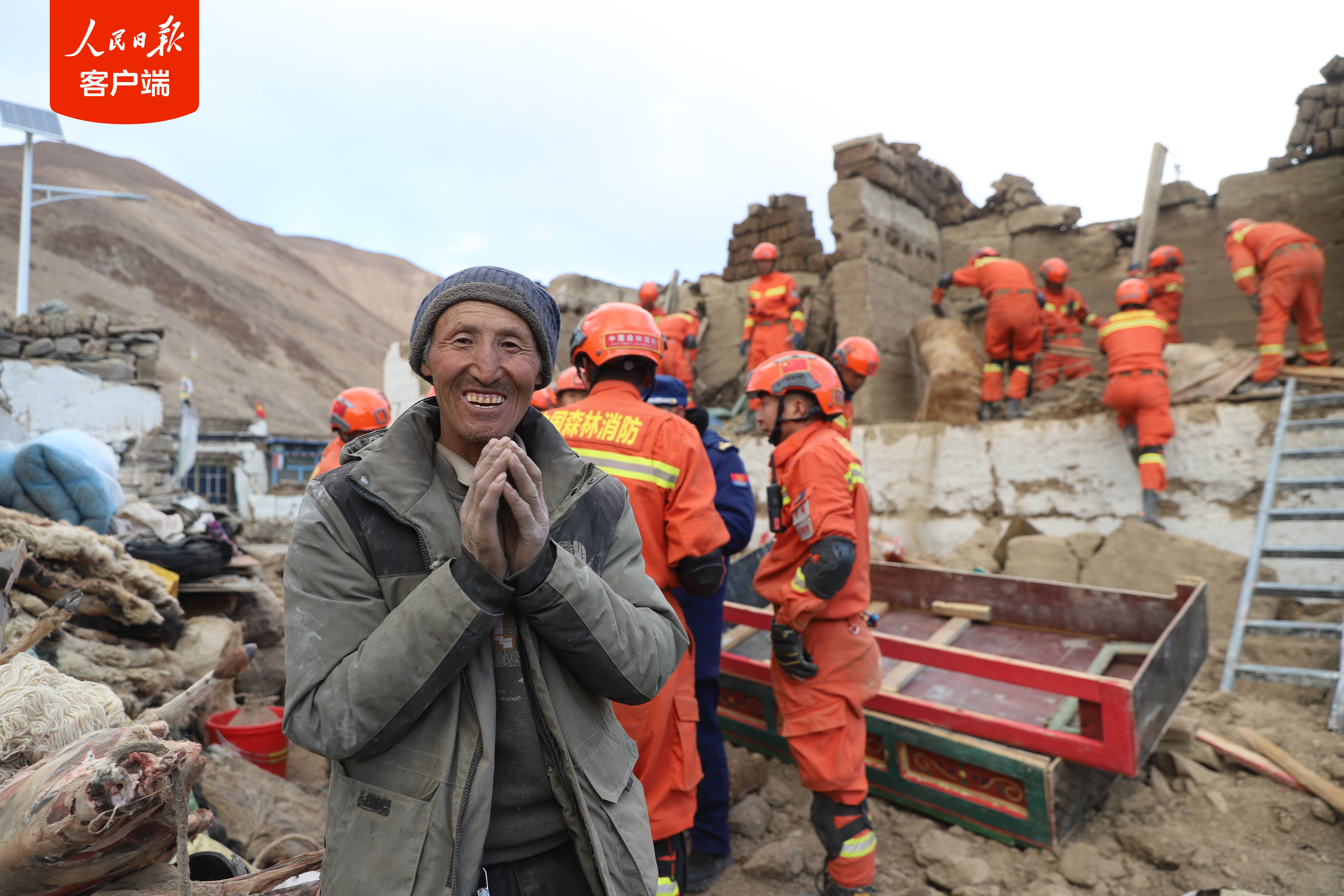 1月7日,西藏日喀則市定日縣發(fā)生6.8級(jí)地震后,西藏森林消防總隊(duì)指戰(zhàn)員第一時(shí)間趕赴受災(zāi)嚴(yán)重的措果鄉(xiāng)野江村展開救援。救援人員把埋在廢墟里的牦牛和生活物資搶救出來(lái)后,村民雙手合十,真誠(chéng)感謝黨和國(guó)家,感謝救援人員。