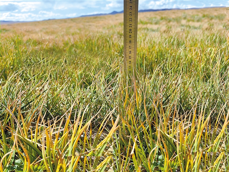 科研人員視察那曲市色尼區(qū)那么切鄉(xiāng)生態(tài)修復(fù)點(diǎn)牧草長(zhǎng)勢(shì)情況。