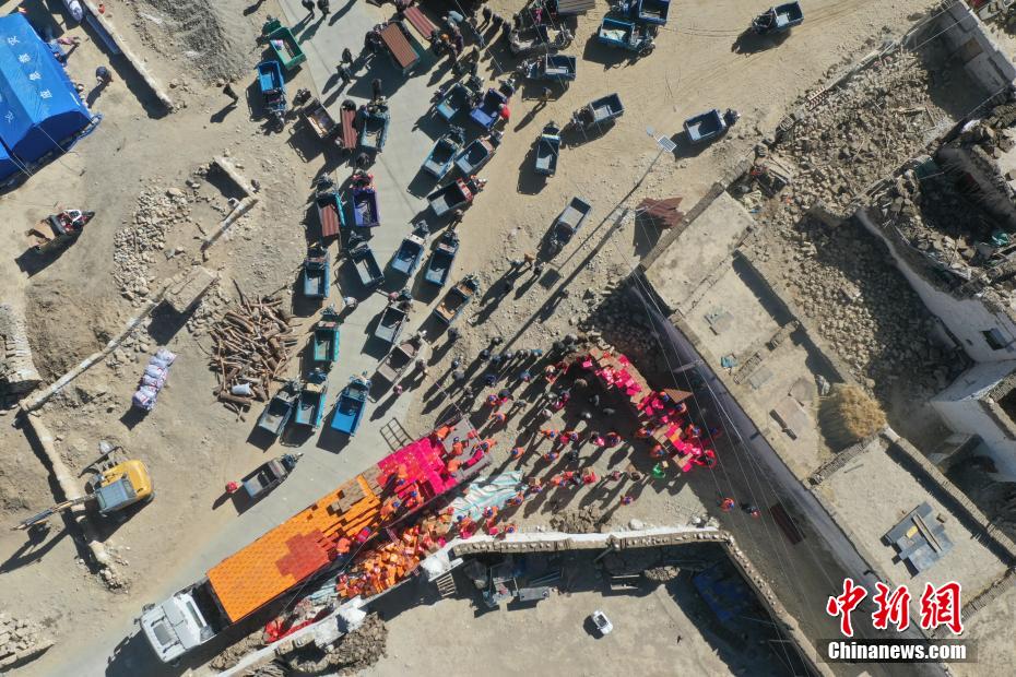 1月9日,西藏自治區(qū)定日縣曲洛鄉(xiāng)措昂村安置點(diǎn),愛心企業(yè)為受災(zāi)民眾搭建活動板房。當(dāng)日,位于西藏自治區(qū)定日縣曲洛鄉(xiāng)措昂村安置點(diǎn),西藏各級救援人員和愛心企業(yè)不斷轉(zhuǎn)運(yùn)、發(fā)放生活物資、搭建活動板房、全力保障受災(zāi)民眾的飲食供應(yīng)等,保障受災(zāi)民眾基本生活。中新社記者 貢嘎來松 攝