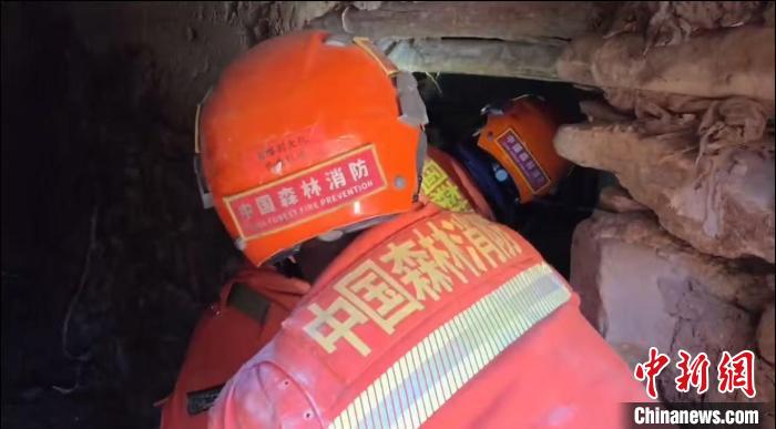 圖為日喀則市森林消防救援大隊(duì)隊(duì)員在受損房屋內(nèi)搜尋受災(zāi)村民財(cái)產(chǎn)。米瑪次仁 攝