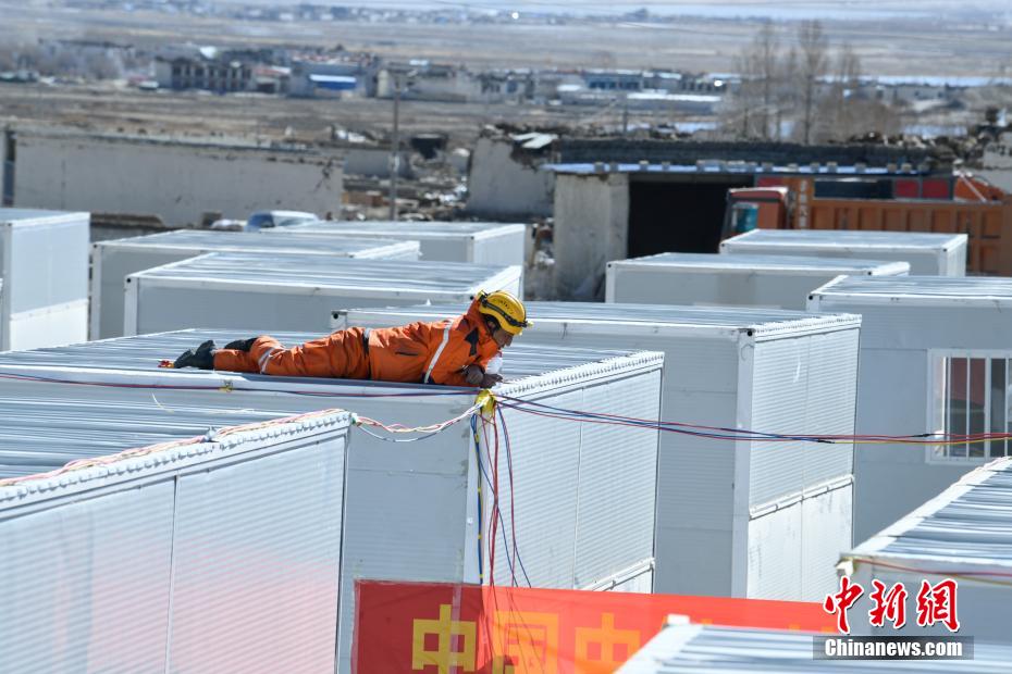 1月7日9時5分,西藏自治區(qū)日喀則市定日縣發(fā)生6.8級地震,震源深度10公里。災(zāi)情就是命令,當(dāng)?shù)卣推髽I(yè)迅速行動,目前災(zāi)區(qū)多個鄉(xiāng)村都在加緊進(jìn)行保溫板房建設(shè),只為讓受災(zāi)民眾早日擁有“安心巢”。據(jù)了解,每間板房有18平方米,可容納4到5人,板房設(shè)有折疊床、桌子、爐子等,并保障民眾用電需求,讓他們更好地度過冬天。圖為1月11日,西藏日喀則市定日縣曲洛鄉(xiāng)措昂村安置點,中國交建西藏指揮部抗震救災(zāi)前線工人在為板房搭設(shè)電路。中新社記者 貢嘎來松 攝